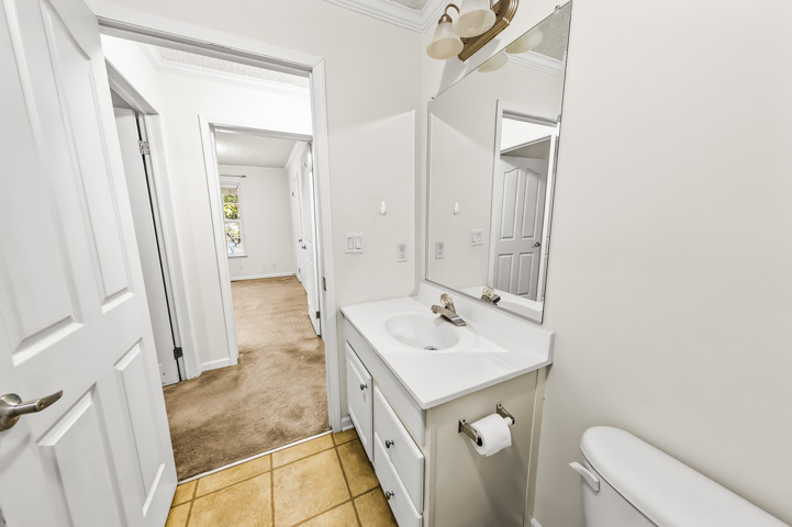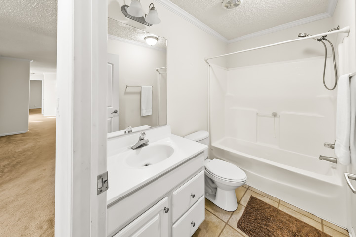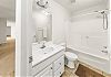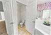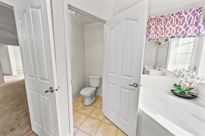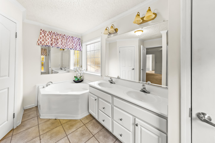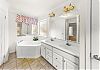 The primary bedroom has its own bathroom, equipped with a double sink, walk in shower, large tub and toilet room.