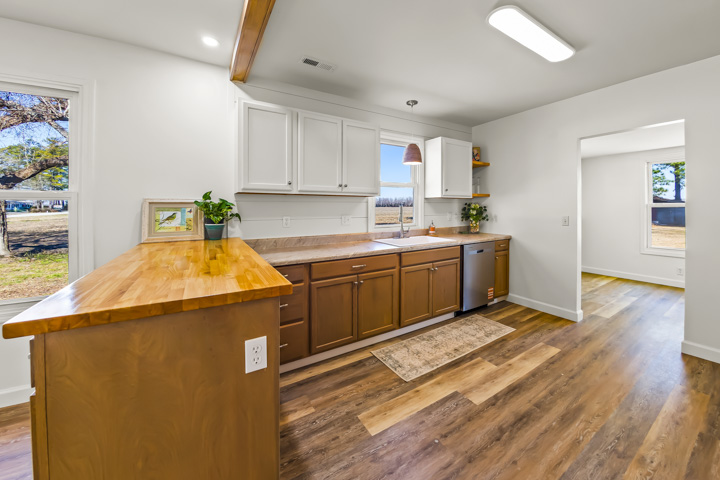 Restoration of this Coastal Country craftsman-style bungalow near Oriental is complete! This beautiful home is situated on 0.72 acres of nicely wooded mature hardwoods & pines with large stretches of open farmland on 3 sides. Lifetime metal roof, 2025 HVAC system, 2025 HWH, all new foundation piers, new LVP flooring, all new light fixtures & outlets, new kitchen counters, cabinets, drawers, SS appliances & sink. Brand new bathrooms with walk-in showers. New carpeting in the bedrooms & office. New laundry room with top-of-the-line washer & dryer. New Studio is adjacent to the laundry room. All windows are large, thermal double-hung that allows lots of ambient lighting into each room. The master suite is huge with an over-sized walk-in closet. Big red barn/storage building on the back of the property. No zoning, no HOA and only 2 miles from downtown Oriental. Bring the chickens, dogs and any other critters that you like. Nothin’ Could Be Finer!